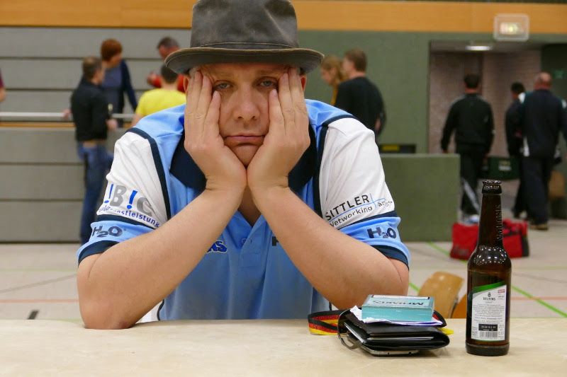 Stimmungsschwäche, ja sogar bis hin zu einer Nervenschwäche ausgeweitet hat. Der Satz ging mit 10 Punkten Differenz verloren, was auch durch den 2.Satz (15 Min!) nicht mehr ausgeglichen werden konnte.