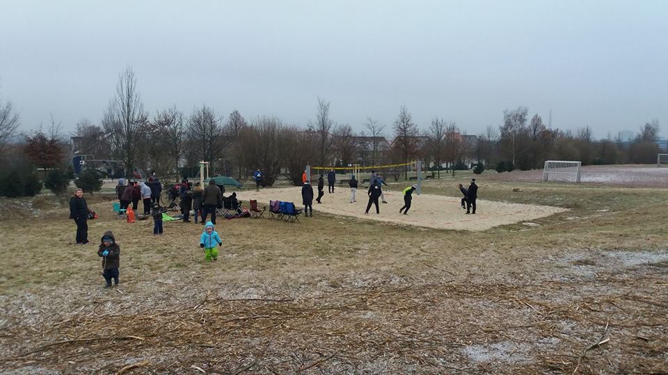 oder doch 22? 23? Wer weiß das schon. Denn es ist ursprünglich eigentlich gar keine offizielle Veranstaltung gewesen. Doch erstens verpflichtet Tradition und zweitens kann so ein Anruf der Presse den Gründer auch schon mal zum Nachgrübeln (und zählen) bringen. Fakt ist, es ist Silvester und wie jedes Jahr ist das 'ultimativ letzte Beachvolleyballturnier des Jahres' angesagt. Und weil es seit über 20 Jahren ein lustiges Event ist und dieses Jahr auch mit 0,5cm (Industrie-)Schnee mal wieder schöneres Winterwetter (die Sonne hat sich leider nicht gegen den Nebel wie gehofft durchsetzen können) war, kamen auch gleich eine ganze Menge Leute: Natürlich aus dem Gründer-Umfeld der TG Römerstadt und der TS Heddernheim, aber auch vom Riedberg, vom SSC Bad Vilbel, aus Mainz, von der FTG in Bockenheim... von überall kamen ganze 21 aktive Sportler und über ein Dutzend Zuschauer an. Dieses Jahr gab es sogar mal eine Eröffnungsrede von Gründer Andi Nau, Jürgen brachte Linien mit, Wiese das Bier, Sam die Musik, Andi den Grill und - er hatte wohl Angst, nachdem die Presse Wind von der Sache bekommen hatte, es könnten etwas mehr kommen - 10kg Grillkohle, Christoph den Lostopf, Eva den Müllsack, Stefan das Feuerwerk,... so war es eine super Gemeinschaftsorganisation geworden. Während sich die ersten ehrgeizig warm liefen und einspielten, beschloss 'die Orga', dass es reichen würde, wenn man vier Mannschaften á 5-6 Spielern bildet. Wir wollen es ja mal nicht mit dem Ehrgeiz übertreiben. Und wie Andi unterstrich "bloß nicht zu viel Spielen" - wir werden ja nicht jünger. Deshalb: keine Rückrunde, ein Satz bis 21. Dass ausgerechnet er sich dann nicht an seine Ansage hielt und den ersten Satz mal gleich bis 27:25 in die Länge zog, zeigte dann wohl doch: Ganz ohne Ehrgeiz geht es nicht. Und man sollte in Folge auch noch eine Reihe anderer Leute, wie bspw. der Römerstädter Senior Andi Stein, quer übers Feld in den Dreck hechten sehen. Da klappte es mit dem Springen dank des gefrorenen Bodens auch beim letzten Hallen-Volleyballer richtig gut. Nachdem in der ersten Runde die gelosten Teams recht ausgeglichen wirkten (auch das zweite Spiel endete mit 22:20 erst in der Verlängerung), driftete danach das Niveau leider etwas auseinander (zu 7, zu 16, zu 12,...). Am Ende triumphierte das Team "no men", dass sich als einziges nur aus Männern zusammen gewürfelt hatte. Wir werden also nächstes Jahr wieder etwas 'steuernd' in das Losverfahren eingreifen müssen. Der Rest gewann aber jeweils ein Spiel, so dass die Balldifferenz eigentlich entscheiden musste, aber da waren auch wieder zwei gleich gut. Also wurden kurzerhand alle zu zweiten Siegern erklärt und die Turnierleitung kam nicht in Verlegenheit sich überlegen zu müssen, ob jetzt die Differenz oder der Quotient entscheidend ist...