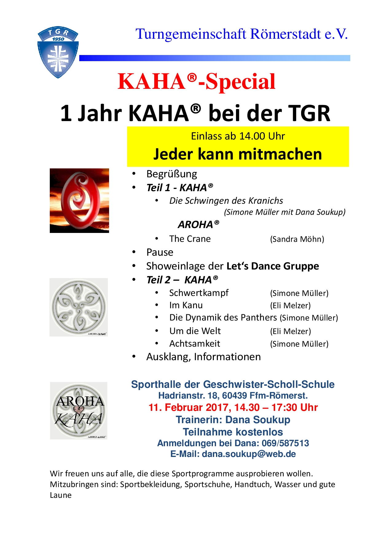 Wir freuen uns, dass Ihr den Weg in unseren Verein findet, um zusammen mit uns einen schönen, sportlichen Nachmittag erleben zu können. Was auf dem Programm nebst KAHA® steht und wer Euch begleiten wird, das ist dem Flyer zu entnehmen. Wir haben ein gemeinsames Ziel. Wir möchten, dass man unsere Gefühle spürt, wir möchten diese Begeisterung für diese Sportarten an alle übertragen.