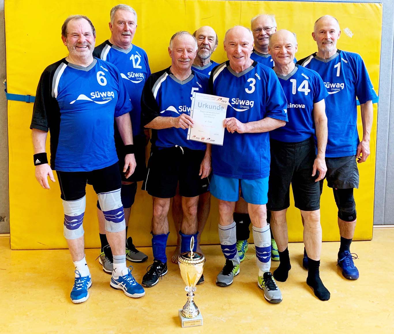 23.03.2019 - Volleyball (wn) Mit einem klaren 3:0 Sieg aber knappen Sätzen (25:20, 28:26 und 25:23) wurden unsere Senioren am 9.3. Südwestdeutscher Meister in der Altersklasse Ü65 beim und gegen TV Bildstock (Saarland).