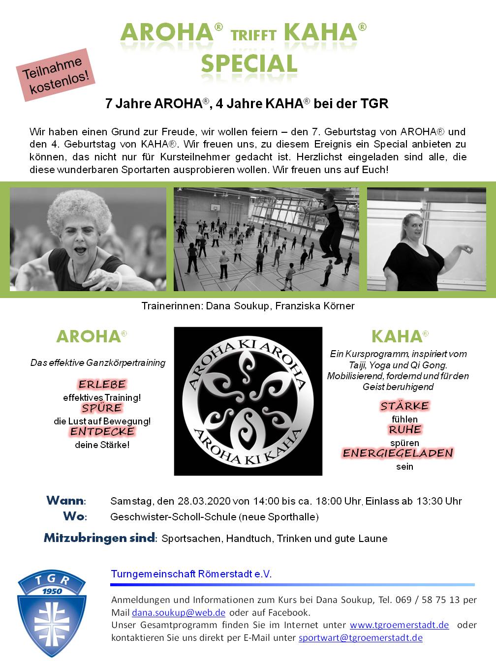 AROHA trifft KAHA® - Special am Samstag, den 28.03.2020 7 Jahre AROHA® und 4 Jahre KAHA® bei TG Römerstadt