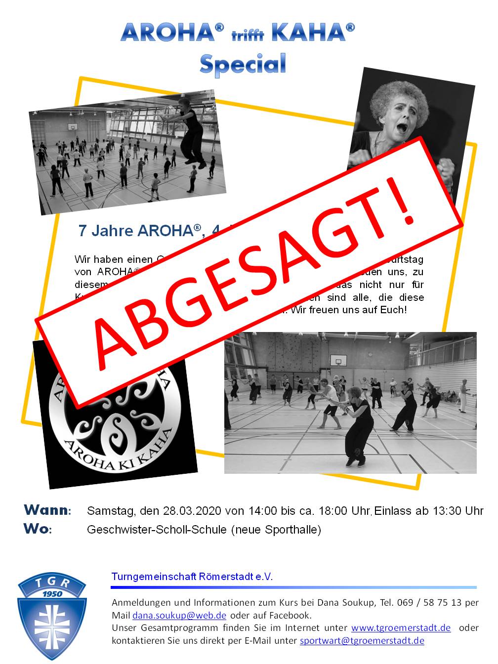 AROHA trifft KAHA® - Special am Samstag, den 28.03.2020 7 Jahre AROHA® und 4 Jahre KAHA® bei TG Römerstadt