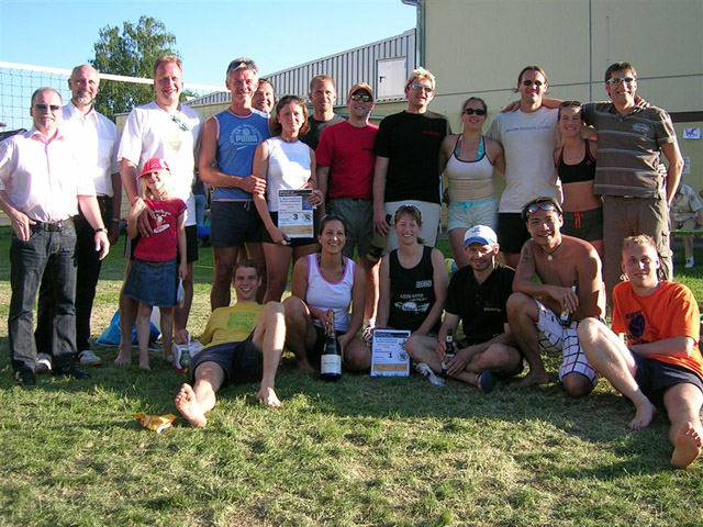 Gut erholt wachte ich um 8:00 Uhr auf. Der Turnierausrichter fragte mich gleich wie es unserem Patienten ging. Patient??? Kai wurde nĂ€mlich gegen 3:00 Uhr Morgens ins Krankenhaus gebracht. Schon wieder? Den nehmen wir ab sofort nicht mehr auf Zweitagesturniere mit! SpaĂ beiseite. Eine Gallenkolik war die Ursache. Kai geht es inzwischen auch wieder gut. Die Galle wird wohl in KĂŒrze entfernt und er wird wohl 6-8 Wochen Pause brauchen. Gute Erholung Kai! VerstĂ€rkung war aber inzwischen eingetroffen. Pia und Stefan kamen um 5:00 Uhr Morgens aus der TĂŒrkei zurĂŒck, so waren wir wieder gut besetzt waren. Das erste Sonntagsspiel lief jedoch nicht gut. Gegen einen guten Gegner war unsere Fehlerquote deutlich zu hoch. Wir verloren zwar knapp beide SĂ€tze mit 23:25 Punkten aber die Stimmung war schlecht. Da wir wussten, dass wir zwei mindestens ebenso starke Teams noch treffen wĂŒrden, nahmen wir uns von nun an vor, nicht mehr jeden Ball zu kommentieren und SpaĂ zu haben. Ich war dann sehr verwundert, dass dies klappte! Jedenfalls gewannen wir das nĂ€chste Spiel mit einer sehr guten Leistung klar 2:0 nach SĂ€tzen. Auch das nĂ€chste Spiel starteten wir super und lieĂen den Gegner nicht ins Spiel kommen. Im zweiten Satz lief es bis zu einer Angabenserie des Gegners auch rund. Diese fanden dadurch ins Spiel und wir verloren mit 23:25 den Satz. Mit einer Ausbeute von 5:3 SĂ€tzen konnten wir zufrieden sein und erwarteten das Platzierungsspiel um Platz 5 oder sogar 3. Doch völlig unerwartet spielten alle anderen Teams stĂ€ndig unentschieden, so dass wir plötzlich Gruppenerster mit dem besten BallpunktverhĂ€ltnis waren und somit im Finale!