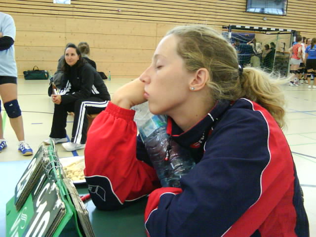 Frauen II holen sich ungeschlagen den Wanderpokal. In der Vorrunde wurden zwei Spiele gewonnen und in zwei Partien trennte man sich 1:1. Damit war das Team als 2. für das Endspiel qualifiziert. In der Vorrunde bekleckerten die Mädchen sich nicht unbedingt mit Ruhm, man lies jedem Gegner die Möglichkeit auch viele Punkte zu holen. Nur im 1. Satz gegen DJK Flörsheim wurde auch gekämpft, um den Satz mit 25:23 für sich zu entscheiden. Mit diesem Satzgewinn war das spätere Endspiel wieder gegen Flörsheim gesichert. Obwohl die halbe Mannschaft mit sehr kleinen Augen am 2. Tag auf dem Feld standen, die Nacht war wohl nach der Feier sehr kurz, zeigten sie und die anderen Spielerinnen im Endspiel eine gute solide Leistung. Am Sonntag gab Karin, unsere Österreicherin, ihr gelungenes Debüt in der Mannschaft. Für ein Vorbereitungsturnier ging es in diesem Spiel doch heiss her, beide Trainer gaben ihr bestes, um dem Schiedsgericht während ihrer Prüfung die Feinheiten der psychologischen "Kriegsführung" zu zeigen. Denkbar knapp gewannen wir mit jeweils 2 Ballpunkten Differenz die zwei Sätze und damit den riesigen Wanderpokal. Wer ihn hat, darf ihn jede Woche putzen.