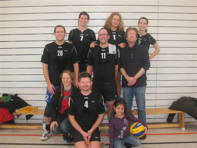So stellte sich die Mannschaft mit Stefan, Andi (Mitte), Marie, Pia (Steller) und Caro, Ole (Außen) fast alleine auf. Wir nahmen uns vor entspannt zu bleiben und die ganze Sache mit Spaß anzugehen. Die Stärke der Dotzheimerinnen sind ihre Frauen. So schlug es zu Beginn des ersten Satzes gleich bei uns ein, als die Damen von Wiesbaden keinen Block hatten. Daher musste die Mitte mehr arbeiten. Insbesondere mit unseren Angaben machten wir den Gegnern das Leben schwer. Selten kamen sie zu einem klaren Spielaufbau und unser Block und die Feldabwehr stand gut. Dazu kamen wir mit unseren Angriffen recht ordentlich durch, so dass wir uns einen Vorsprung erarbeiteten. Der 25`te Punkt lies zwar etwas auf sich warten aber ungefährdet wurde der Satz mit 25:19 Punkten (inzwischen vor 5 Fans) gewonnen. Diese Konstanz konnten wir ungewöhnlicher Weise auch im zweiten Satz durchhalten. Der Spielverlauf war identisch. Unsere Zuschauer sahen ein sehr gutes Spiel ohne Schwächeperioden der TV Killers. So gewannen wir den zweiten Satz ebenso mit 25:19 Punkten. Im dritten Satz veränderten die Dotzheimer nochmals ihre Aufstellung, konnten uns damit nicht mehr stoppen. Etwas knapper aber genauso verdient ging der Satz mit 25:22 Punkten an uns und damit der Spielgewinn.