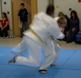 Action pur erlebten alle Zuschauer bei der Hap-Ki-Do-Prüfung am 03.07.2004 in der Turnhalle der Ebelfeldschule in Frankfurt am Main Praunheim.